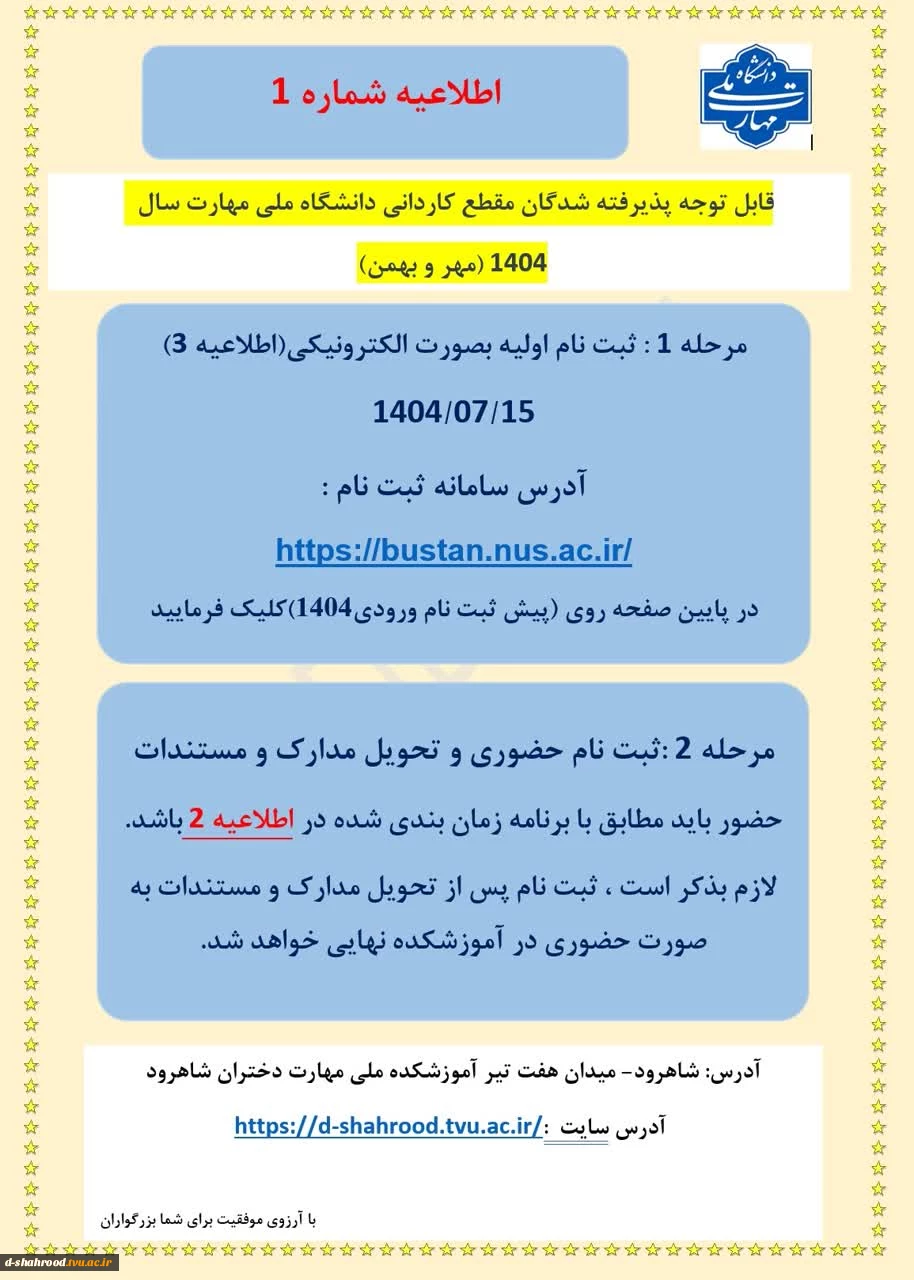 اطلاعیه شماره یک ثبت نام کاردانی 2