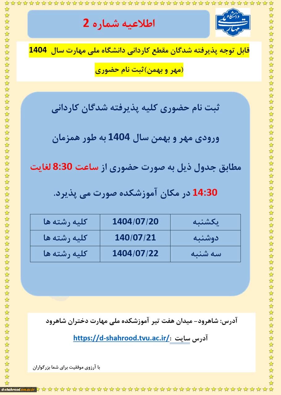 اطلاعیه شماره دو ثبت نام کاردانی 2